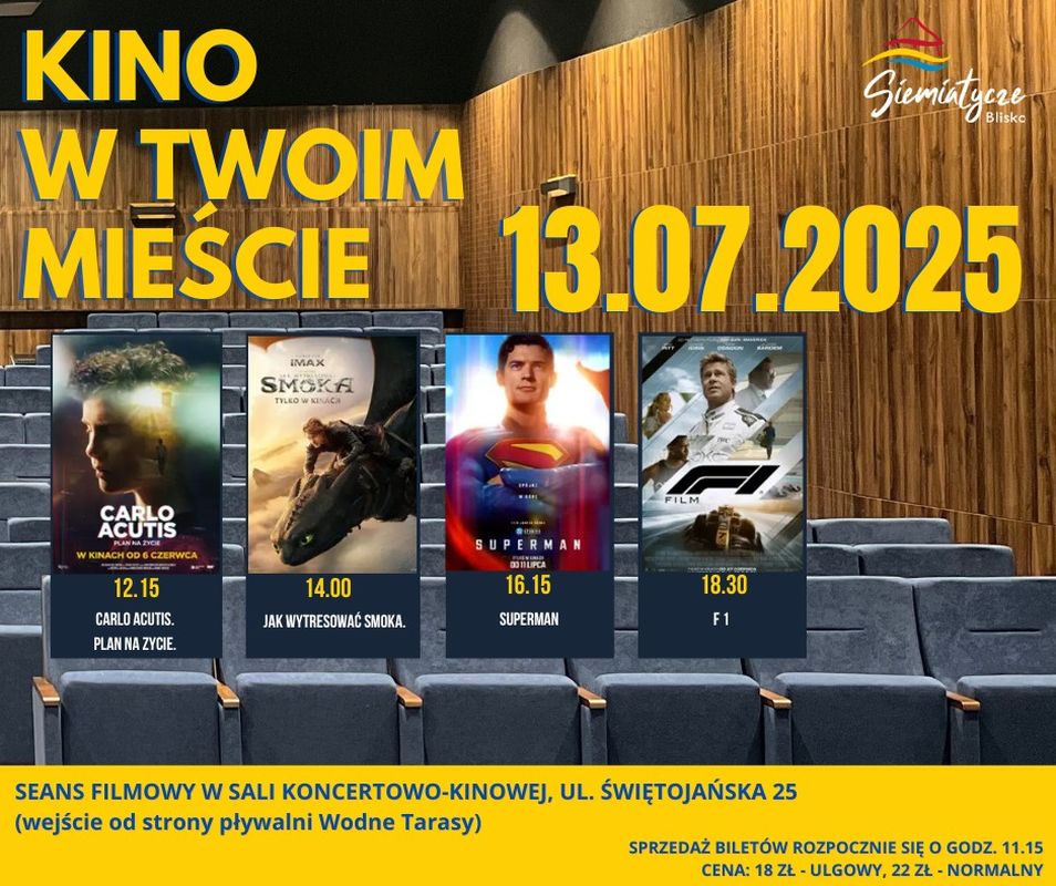 W niedzielę, 13 lipca „Kino w Twoim Mieście” zagości w Siemiatyczach z projekcjami filmowymi.