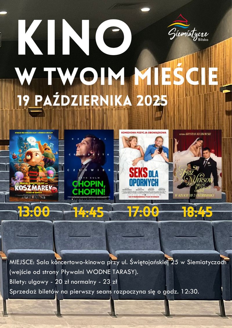 W niedzielę, 19 października, „Kino w Twoim Mieście” zagości w Siemiatyczach z projekcjami filmowymi.