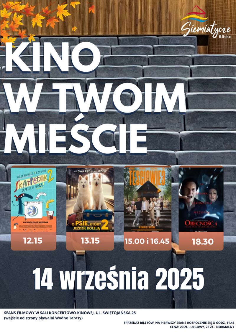 W niedzielę, 14 września, „Kino w Twoim Mieście” zagości w Siemiatyczach z projekcjami filmowymi.