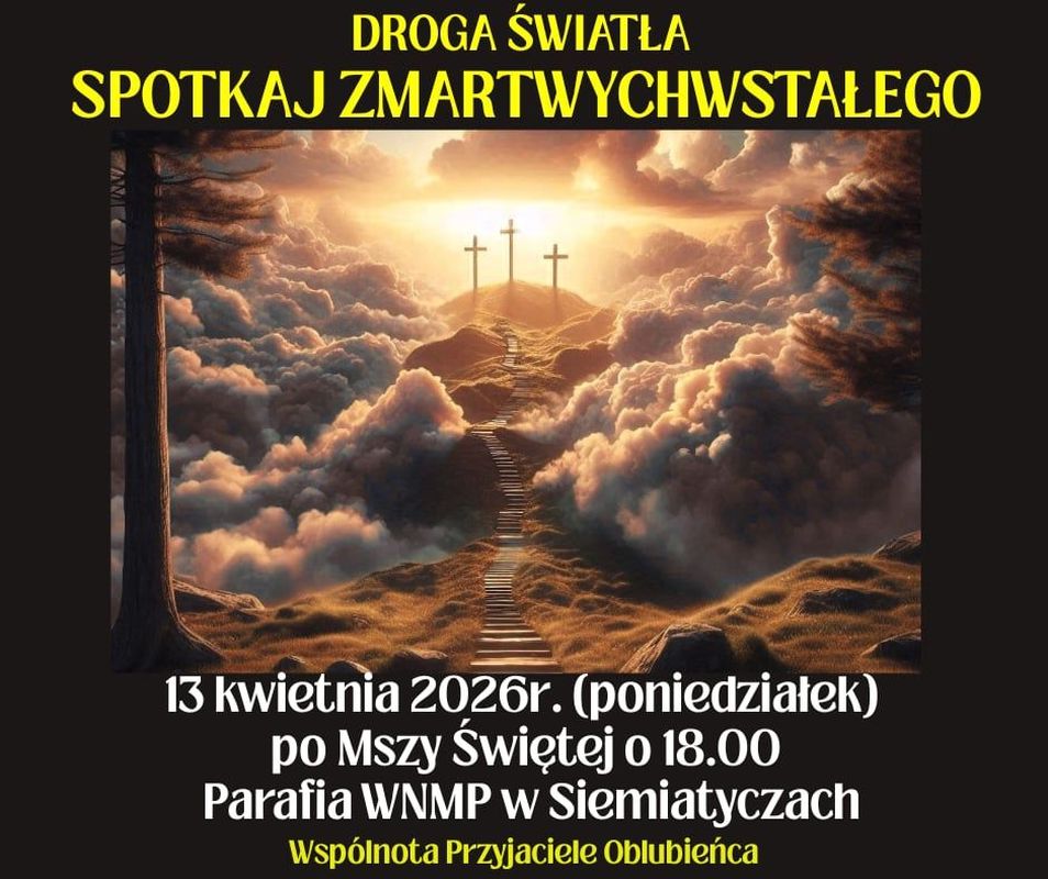 Takie nabożeństwo odbędzie się w kościele pw. Wniebowzięcia Najświętszej Maryi Panny w Siemiatyczach w poniedziałek, 13 kwietnia, po Mszy Świętej sprawowanej o godz. 18:00. Organizatorami są parafia oraz Wspólnota Przyjaciele Oblubieńca.
