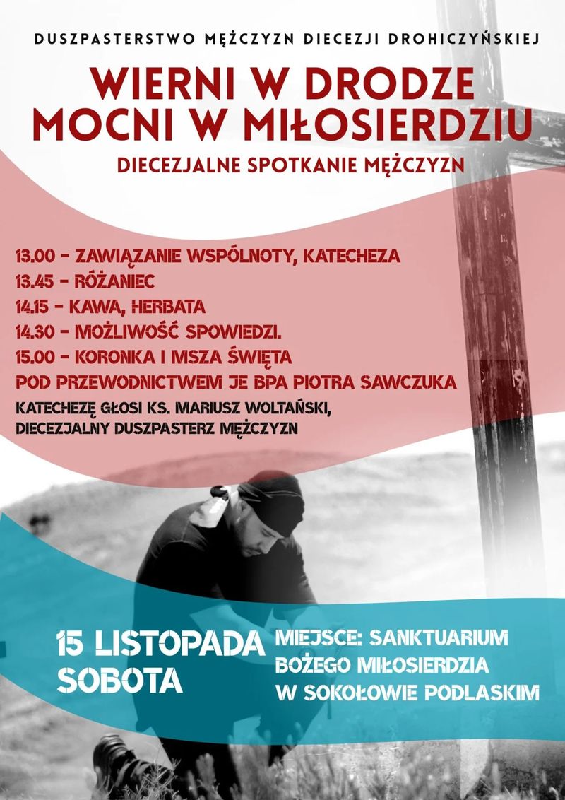 Spotkanie odbędzie się 15 listopada w Sanktuarium Miłosierdzia Bożego w Sokołowie Podlaskim. Jego hasłem są słowa: „Wierni w drodze, mocni w Miłosierdziu”, które wpisują się w jubileuszowy temat Kościoła – Pielgrzymi nadziei. Ma być to czas wspólnej modlitwy, refleksji i braterskiego spotkania, by umocnić się w wierze i odkrywać źródło prawdziwej siły, która rodzi się z miłosierdzia.W programie:
