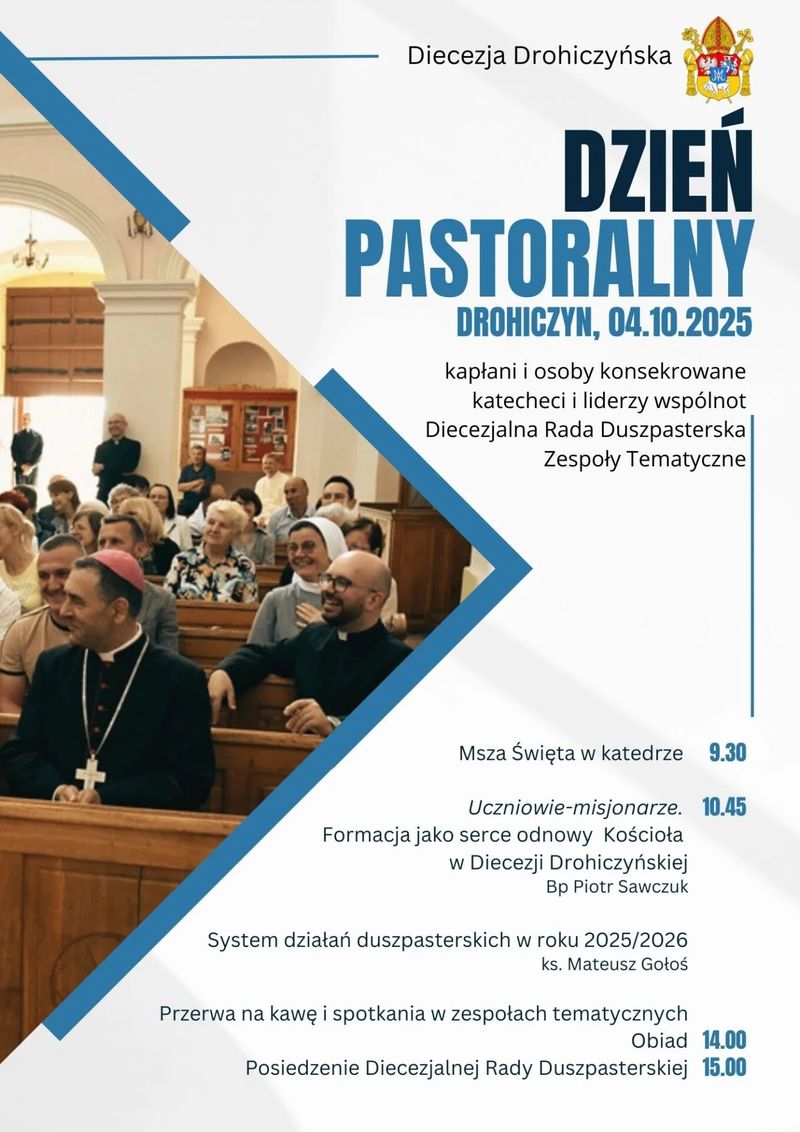 Dzień Pastoralny odbędzie się w Drohiczynie, w sobotę 4 października. Zapraszając na to spotkanie kapłanów, osoby konsekrowane, członków Diecezjalnej Rady Duszpasterskiej i Zespołów Tematycznych, katechetów oraz liderów wspólnot i ruchów kościelnych, biskup drohiczyński Piotr Sawczuk wyjaśnia: