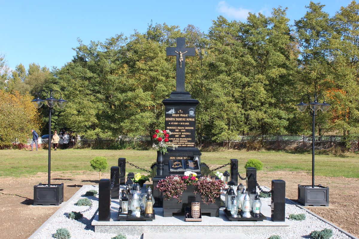 Śp. ks. Henryk Nowak był proboszczem w Grodzisku koło Siemiatycz przez 22 lata. W tym czasie zapisał się w pamięci i sercach tutejszych parafian. Gdy zmarł w marcu bieżącego roku, w Grodzisku odbyły się uroczystości pogrzebowe. To właśnie tutaj jego ciało zostało pochowane na cmentarzu parafialnym. Teraz wdzięczni parafianie oddali hołd pamięci śp. ks. Henryka Nowaka, budując mu nagrobek.