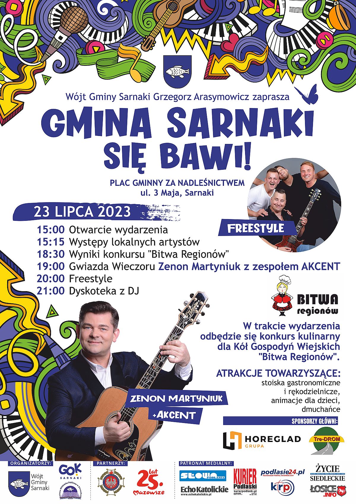 „Gmina Sarnaki się bawi!” - impreza pod takim hasłem odbędzie się 23 lipca w Sarnakach, na placu gminnym przy ul. 3 Maja. Gwiazdą wieczoru będzie Zenek Martyniuk z zespołem.