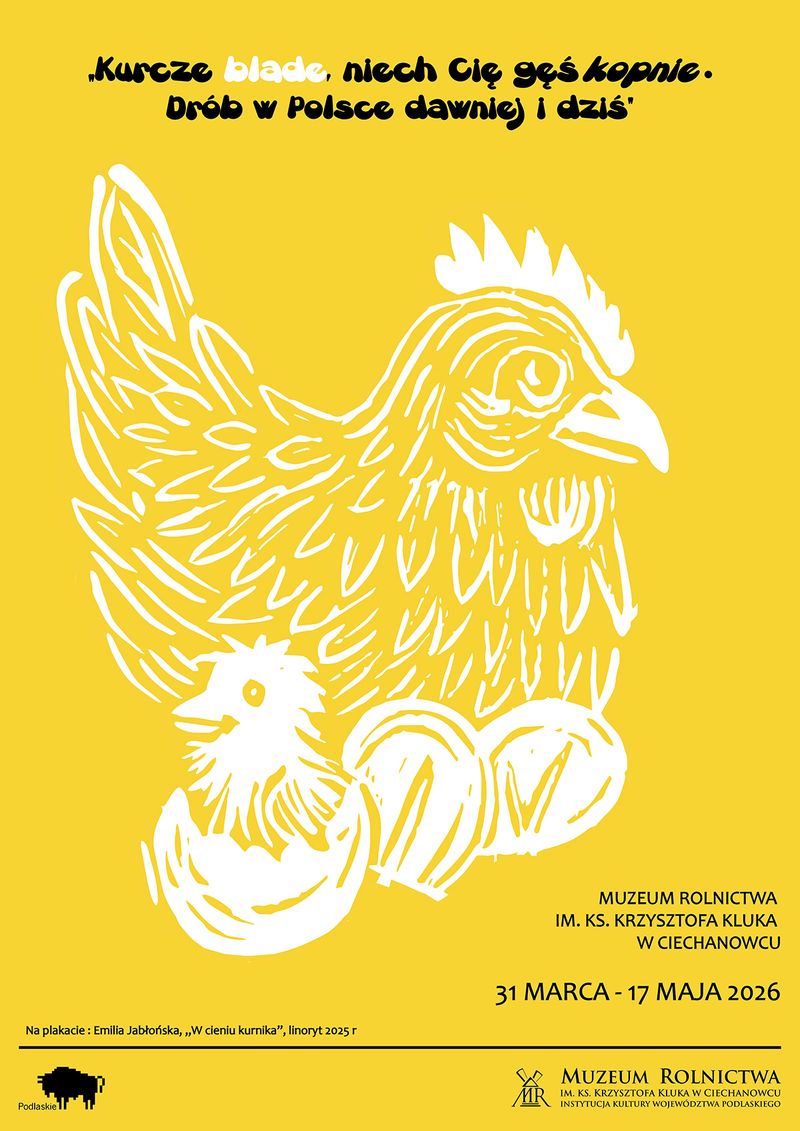 Muzeum Rolnictwa im. ks. Krzysztofa Kluka w Ciechanowcu zaprezentuje ekspozycję „Kurcze blade, niech Cię gęś kopnie. Drób w Polsce dawniej i dziś”. Będzie to wystawa pokazującą rozwój hodowli drobiu oraz jego obecność w kulturze i codziennym życiu.