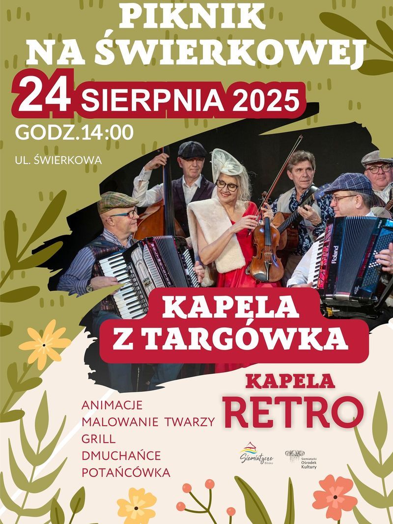 W niedzielę, 24 sierpnia podczas „Pikniku na Świerkowej” zagrają Kapela z Targówka i Kapela Retro. Początek pikniku o godz. 14.00. W programie także – potańcówka pod chmurką.