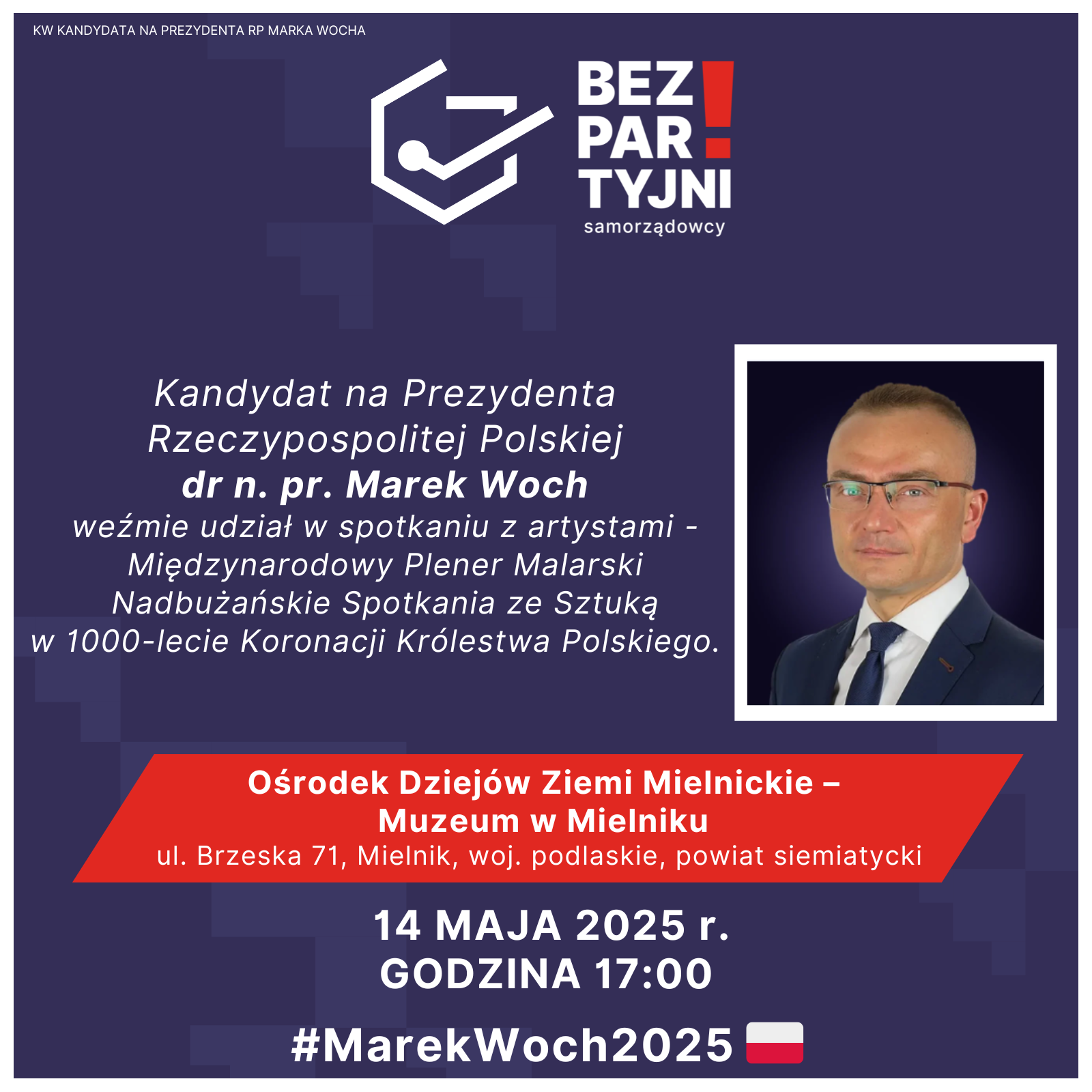 W wydarzeniu weźmie udział dr Marek Woch – kandydat na urząd Prezydenta Rzeczypospolitej Polskiej. Jego obecność będzie okazją do rozmów o znaczeniu kultury i dziedzictwa narodowego w życiu społecznym oraz o potrzebie wspierania twórców i inicjatyw lokalnych.W programie wernisażu zaplanowano powitanie gości i prezentację artystów biorących udział w plenerze, a także wystawę obrazów powstałych w jego trakcie. Spotkanie zakończy odczyt ks. prałata Józefa Maja.