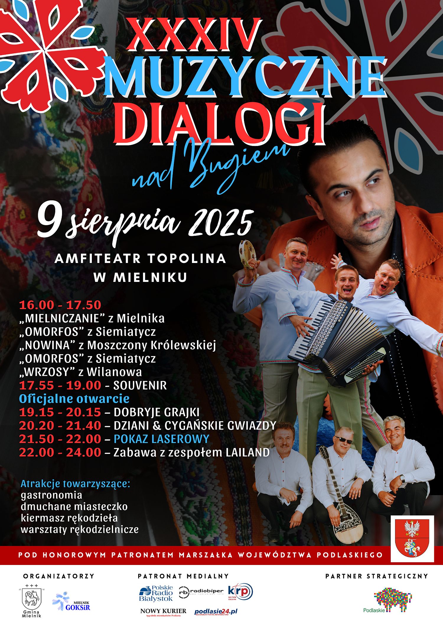 Amfiteatr Topolina przy ul. Brzeskiej w Mielniku ponownie stanie się sercem muzycznych i kulturowych spotkań. W sobotę, 9 sierpnia odbędzie się tam XXXIV edycja Muzycznych Dialogów nad Bugiem – wydarzenie, które od lat przyciąga miłośników folkloru, muzyki i dobrej zabawy z całego regionu.