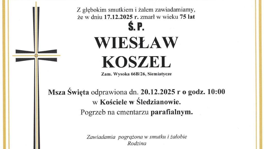 Region Bielsk Podlaski Drohiczyn BielskPodlaski Pt. 19.12.2025 07:09:35 Zmarł Wiesław Koszel – kapelmistrz, społecznik, człowiek muzyki