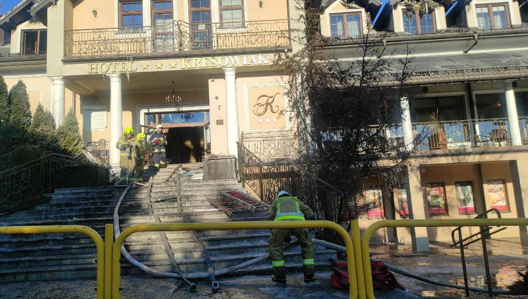 Region Czw. 25.12.2025 12:28:55 Pożar hotelu w Siemiatyczach. Strażacy nadal na miejscu, ulica Grodzieńska częściowo zakorkowana