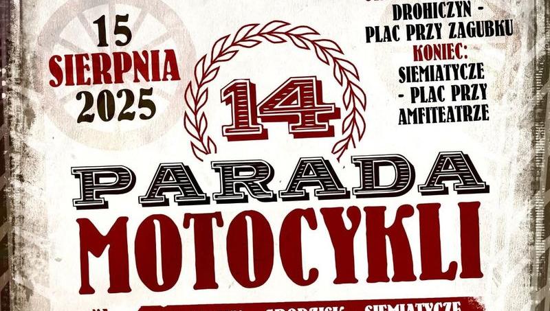 Region Drohiczyn Czw. 14.08.2025 07:51:28 15 sierpnia odbędzie się Parada Motocykli Drohiczyn - Grodzisk – Siemiatycze