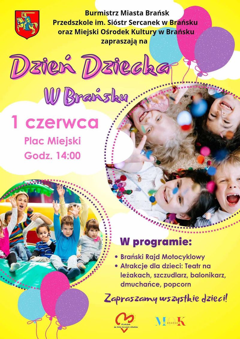Wszystko to w niedzielę, 1 czerwca od godz. 14.00 na Placu Miejskim w Brańsku. - Niech to będzie dzień pełen uśmiechów, zabawy i kolorowych wspomnień! - zachęcają organizatorzy, którymi są: Burmistrz Miasta Brańsk Agata Puchalska, Przedszkole im. Sióstr Sercanek w Brańsku oraz Miejski Ośrodek Kultury w Brańsku. Organizatorami Brańskiego Rajdu Motocyklowego są ponadto: Stowarzyszenie Kultury Podlaskiej „Wspólnota i Jedność”, Stowarzyszenie Międzynarodowy Motocyklowy Rajd Katyński oraz 15 WDH im. „Inki” w Brańsku.
