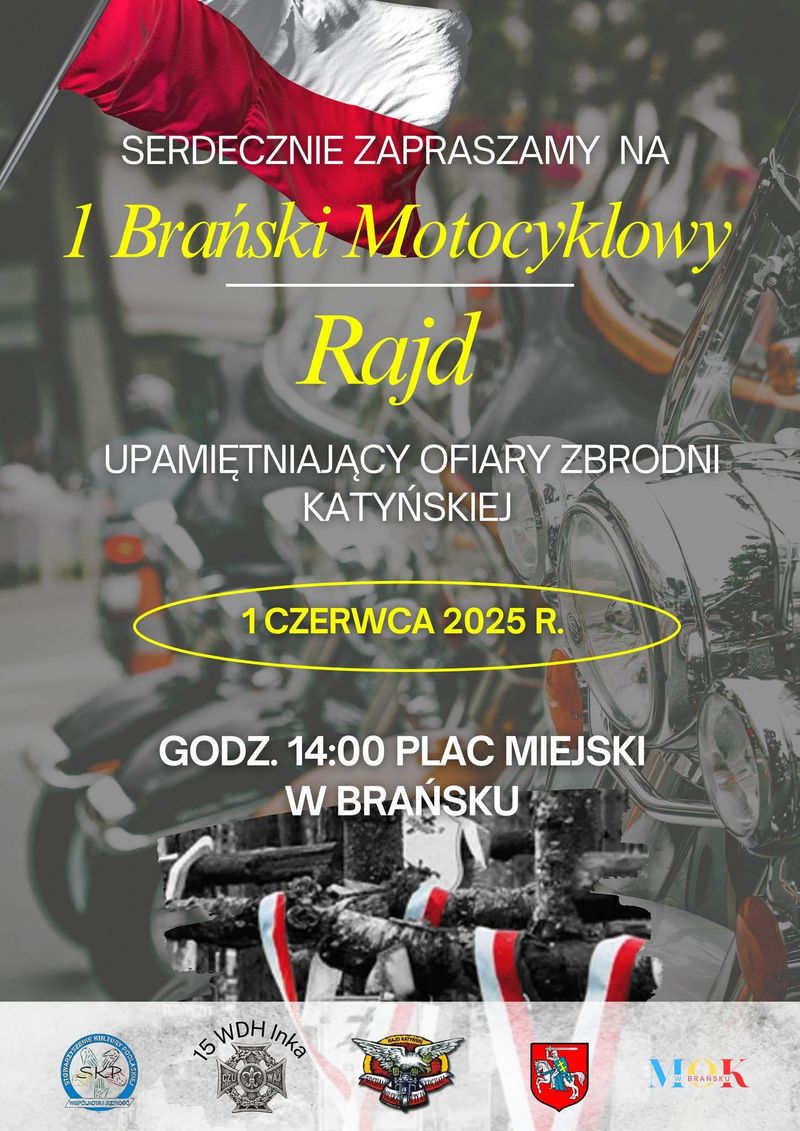 1 czerwca w Brańsku odbędzie się też 1. Brański Rajd Motocyklowy upamiętniający Ofiary Zbrodni Katyńskiej. To wyjątkowe wydarzenie łączące pamięć historyczną z pasją do motocykli. Jak wyjaśniają organizatorzy - wspólnie oddamy hołd bohaterom, a także spędzimy czas w atmosferze patriotyzmu i wspólnoty.