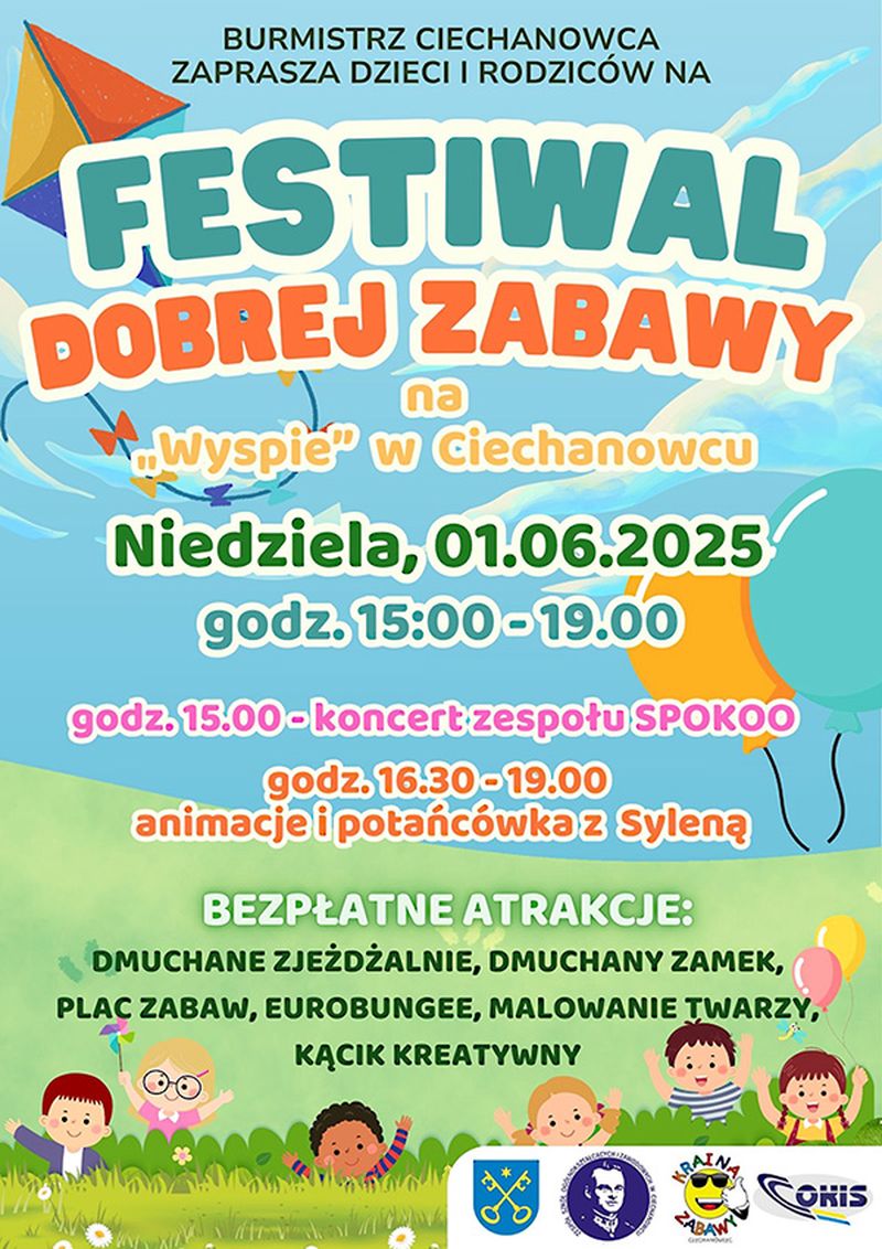 Festiwal Dobrej Zabawy odbędzie się w niedzielę, 1 w godzinach od 15.00 do 19.00 na „Wyspie” w Ciechanowcu. Do wspólnej zabawy dzieci i ich opiekunów zaprasza Burmistrz Ciechanowca.