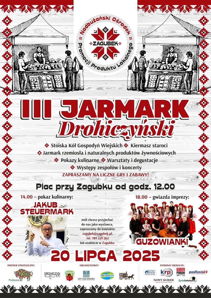 III Jarmark Drohiczyński odbędzie się już w najbliższą niedzielę, 20 lipca 2025 roku, na placu przy Zagubku w Drohiczynie. Rozpocznie się o godz. 12:00.