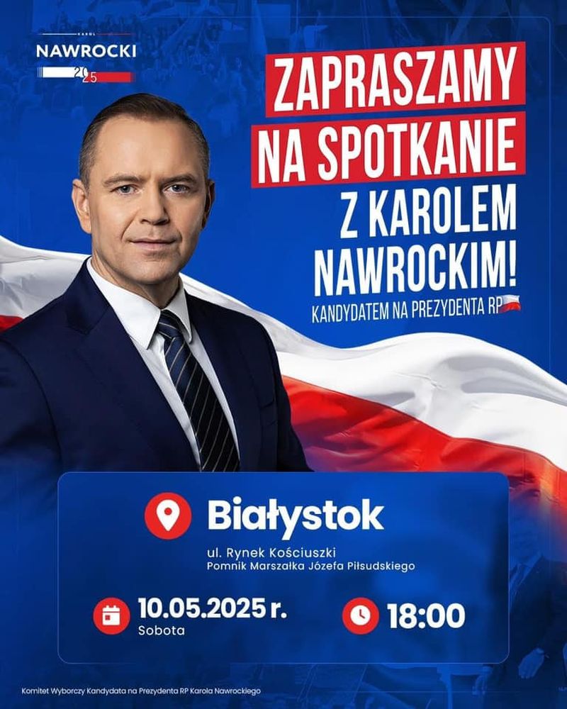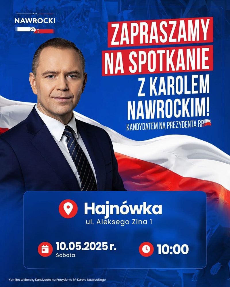 Kandydat na prezydenta rozpocznie dzień od wizyty w Hajnówce. O godzinie 10:00 Karol Nawrocki spotka się z mieszkańcami na Skwerze im. dr Dymitra Wasilewskiego, przy ul. Aleksandra Zina 1. Będzie to okazja do rozmowy na temat wyzwań lokalnych społeczności oraz przedstawienia programu wyborczego.Następnie, o godzinie 12:00, kandydat pojawi się w Grodzisku (pow. siemiatycki), gdzie na placu przed remizą OSP przy ul. 1 Maja 6 odbędzie się spotkanie otwarte. Organizatorzy zapraszają wszystkich zainteresowanych – mieszkańców gminy i powiatu, a w sposób szczególny druhów z lokalnych jednostek OSP.
