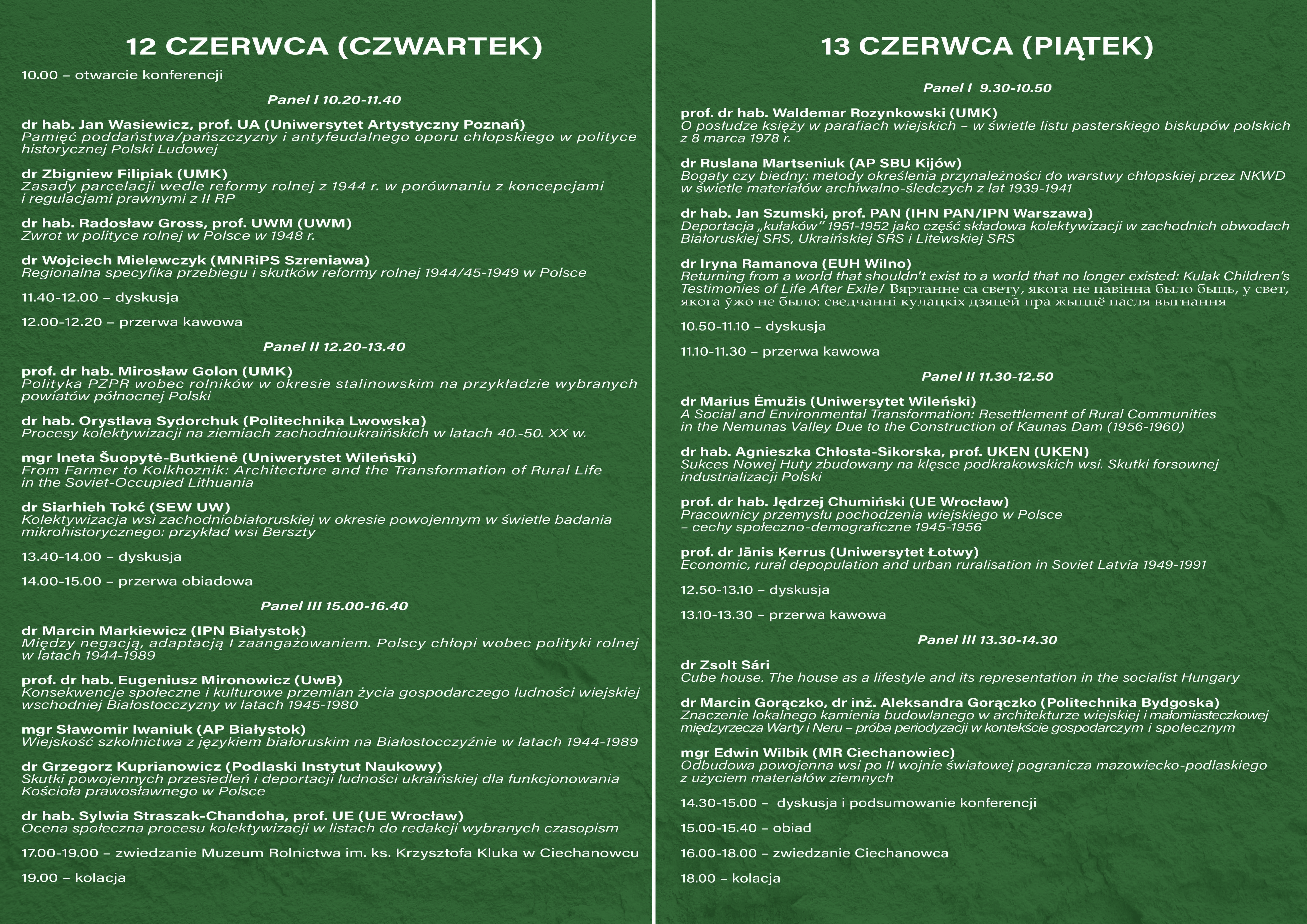 Organizatorami wydarzenia są Muzeum Rolnictwa w Ciechanowcu, Departament Kultury i Dziedzictwa Narodowego Urzędu Marszałkowskiego Województwa Podlaskiego, Katedra Historii Wojskowej UMK oraz Zarząd Główny Polskiego Towarzystwa Historycznego.W konferencji wezmą udział naukowcy z Polski, Litwy, Łotwy, Ukrainy, Białorusi i Węgier. Prelegenci podejmą temat przemian społecznych, kulturowych i gospodarczych na obszarach wiejskich w okresie PRL oraz w państwach sąsiednich – m.in. kolektywizacji, reformy rolnej, przesiedleń ludności, relacji państwo-wieś, a także wpływu ideologii i urbanizacji na życie codzienne mieszkańców wsi.
