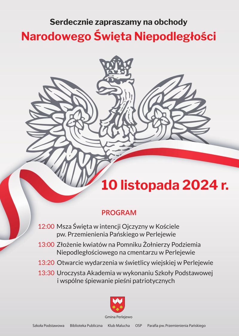 W niedzielę, 10 listopada w Perlejewie odbędą się uroczyste obchody Narodowe Święto Niepodległości.