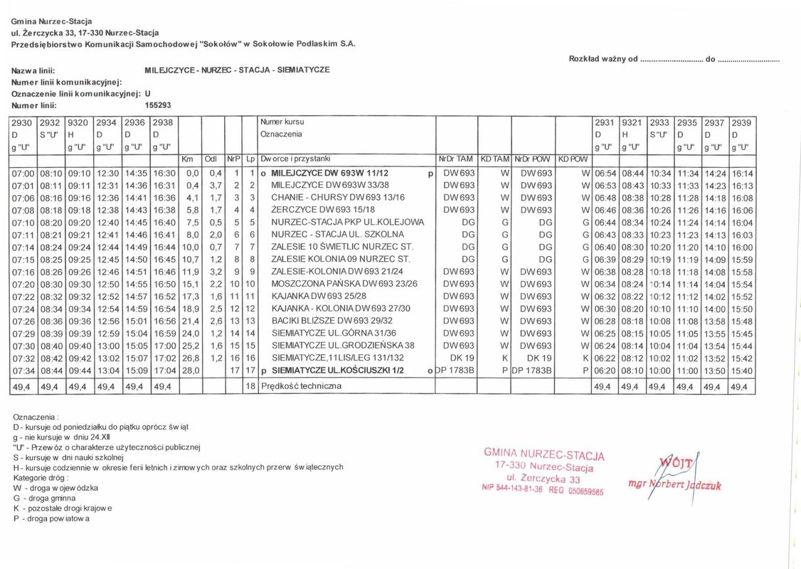 Pięć nowych połączeń autobusowych z Milejczyc, przez Nurzec do Siemiatycz i z powrotem pozwoli to na skomunikowanie obu gmin z miastem powiatowym oraz dotarcie do dworca PKP w Nurcu Stacji. Połączenie autobusowe do dworca PKP umożliwi mieszkańcom Milejczyc korzystanie z podroży pociągami, może być też wykorzystywane przez mieszkańców Siemiatycz, którzy nie mają bezpośredniego dostępu do linii kolejowej.