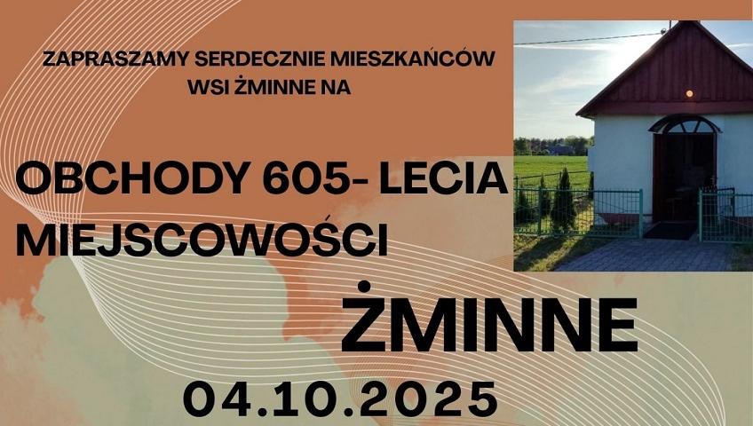 Uroczysta Msza Święta, odprawiona o godz. 11:00 w intencji mieszkańców wsi, w kaplicy Matki Boskiej Częstochowskiej, rozpocznie obchody 605-lecia miejscowości Żminne (gm. Siemień). Wydarzenie będzie wyjątkową okazją do wspólnego przypomnienia sobie historii miejscowości, osób z nią związanych oraz oddania hołdu tym, którzy ją tworzyli. Uroczyste obchody odbędą się w sobotę, 4 października.