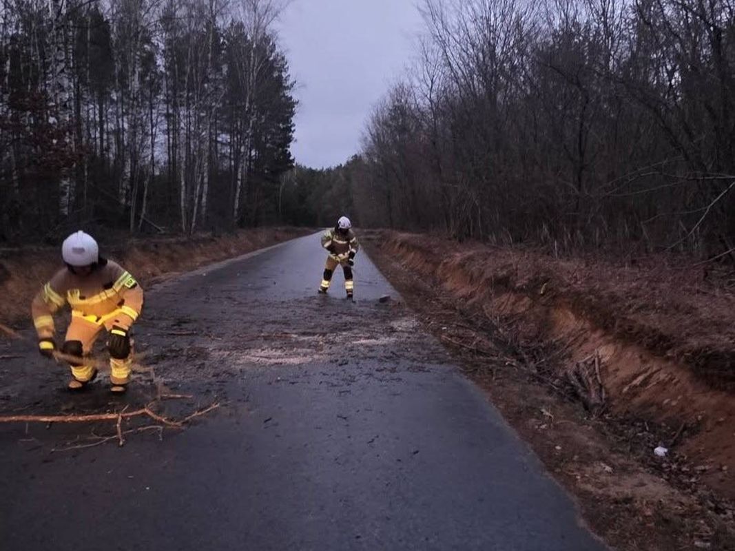 - Stadniki (gm. Grodzisk) – drzewo na drodze oraz zerwana linia energetyczna: OSP Stadniki