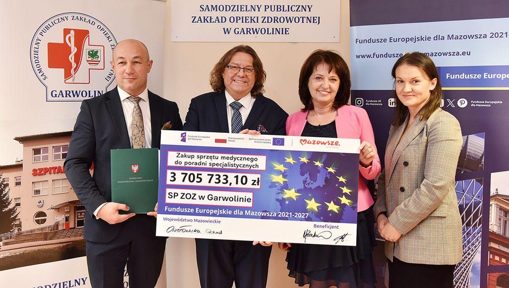 Dzięki unijnemu wsparciu szpital w Garwolinie zostanie doposażony w nowoczesny sprzęt. Zasili on m.in. poradnię ginekologiczno-położniczą, kardiologiczną z pracownią badań nieinwazyjnych, chirurgii ogólnej, chirurgii urazowo-ortopedycznej, onkologiczną, rehabilitacji z pracownią fizjoterapii ambulatoryjnej oraz pracownię RTG. – To znaczące dofinansowanie, aż 3,7 mln zł, które pozwoli na zwiększenie dostępności usług świadczonych przez szpital. Zakup nowoczesnego sprzętu przyniesie realne korzyści przede wszystkim pacjentom, zapewniając im wyższy komfort i jakość leczenia. Jednocześnie umożliwi placówce świadczenie usług medycznych na najwyższym poziomie – podkreśla Janina Ewa Orzełowska, członkini zarządu województwa mazowieckiego.W podpisaniu umowy, które odbyło się w poniedziałek, 27 października, uczestniczyli Janina Ewa Orzełowska, członkini zarządu województwa mazowieckiego, Krzysztof Żochowski, dyrektor SP ZOZ, Dorota Prokurat, kierownik siedleckiego Oddziału MJWPU i Michał Rękawek, zastępca dyrektora SP ZOZ.
