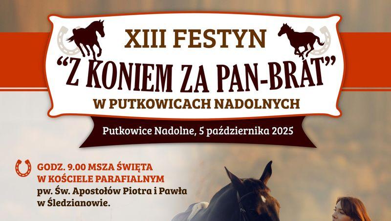 W niedzielę, 5 października w Putkowicach Nadolnych w gminie Drohiczyn odbędzie się 13. Festyn „Z koniem za Pan-Brat”. Festyn rozpocznie Msza Św. sprawowana o godz. 9.00 w kościele parafialnym pw. Św. Apostołów Piotra i Pawła w Śledzianowie. Po Eucharystii odbędzie się poświęcenie zwierząt i parada zaprzęgów, które przejadą przez Śledzianów i udadzą się do Putkowic Nadolnych (tereny nad Bugiem).