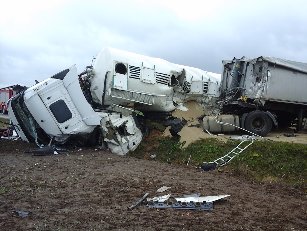 AKTUALIZACJA: Zderzenie dwóch ciężarówek na trasie Siemiatycze–Brańsk. Utrudnienia
